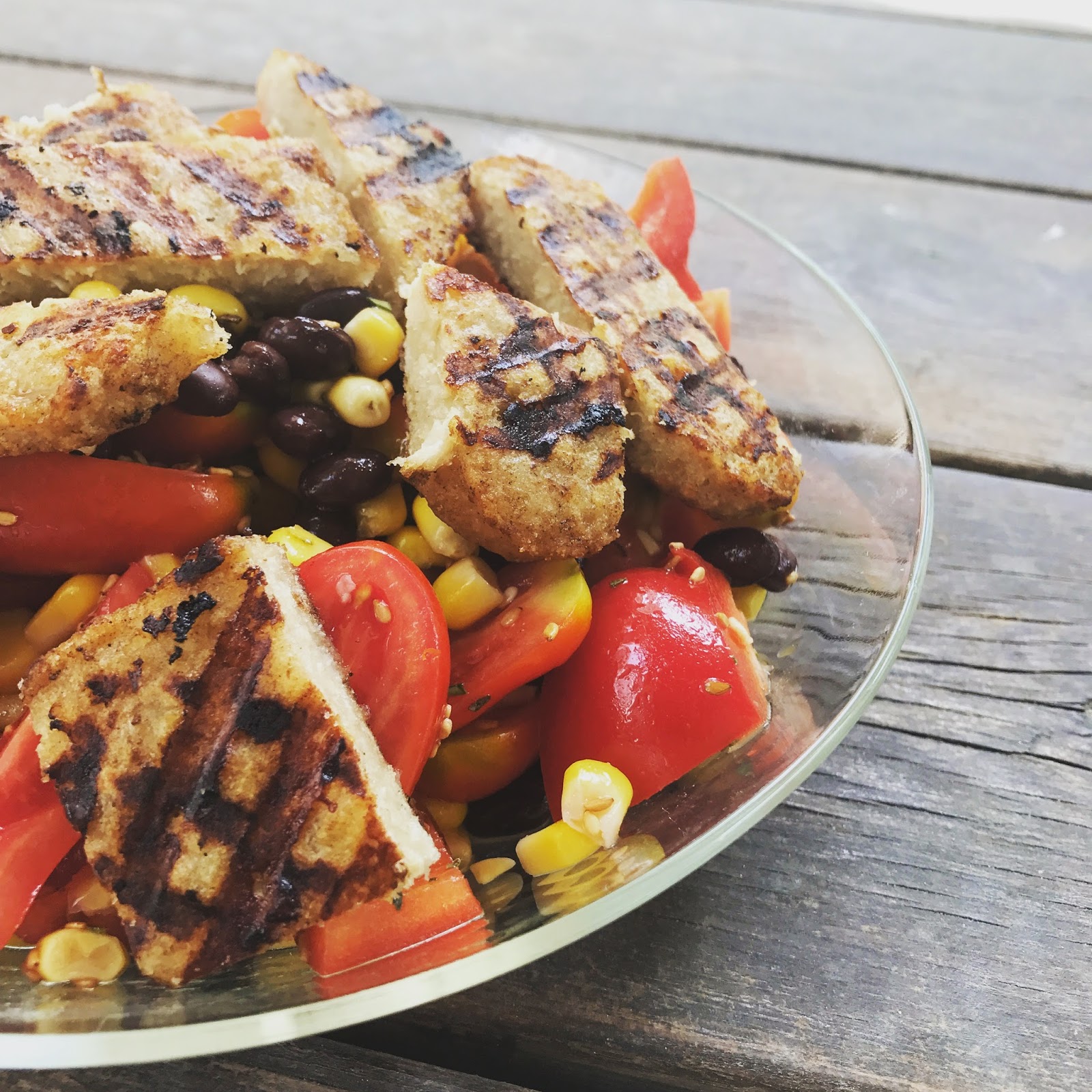 ארוחה קלילה ומהירה בפחות מעשר דקות הכנה. גמבה טרייה וקראנצ'ית, עגבניות שרי, גרגירי תירס, שעועית שחורה, ונתחים טעימים של "חזה בגריל מן הצומח", אחד מהמוצרים הטבעוניים המוצלחים ביותר של טבעול.
