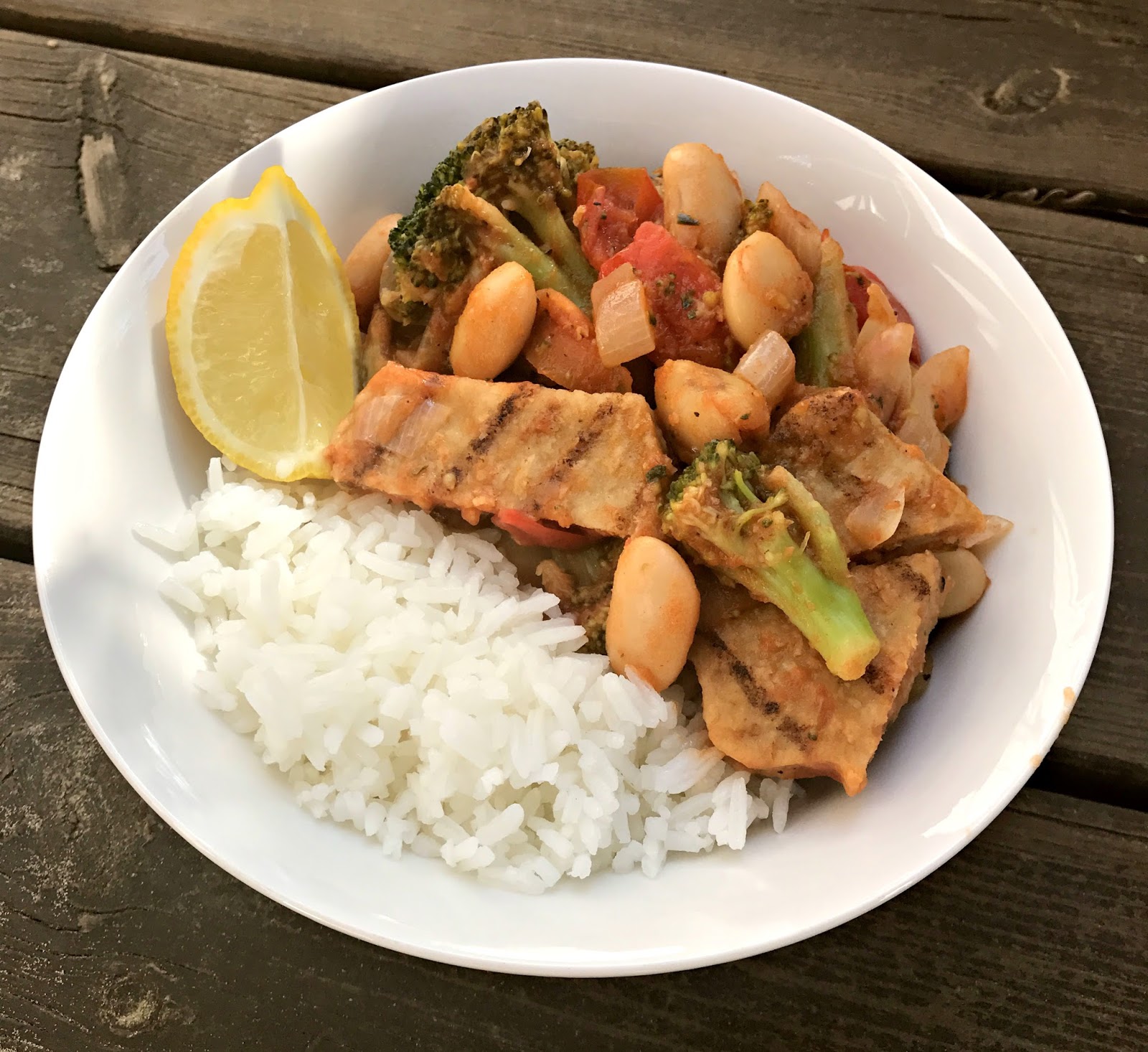 | תבשיל טבעוני מהיר של ברוקולי, שעועית וחזה בגריל מן הצומח |