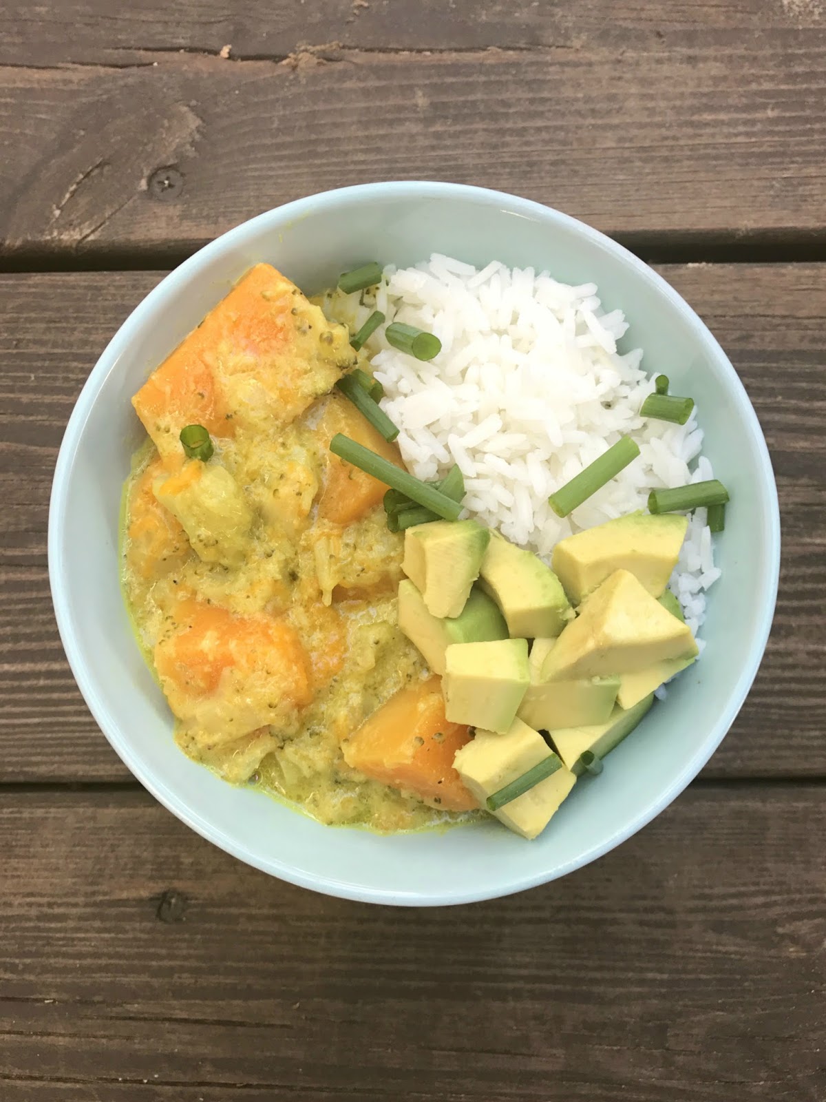 תבשיל קארי של דלורית וברוקולי בקרם קוקוס